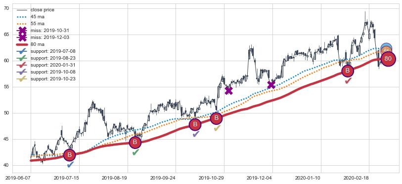 ➣ 80小时均线于(2020-03-04: 60.50)形成【死叉】基于【死叉历史模型】预测死叉后最低波谷价格: 56.81, 死叉后最低价格45.11,已经下跌超出预测最低波谷价格, 预期反弹