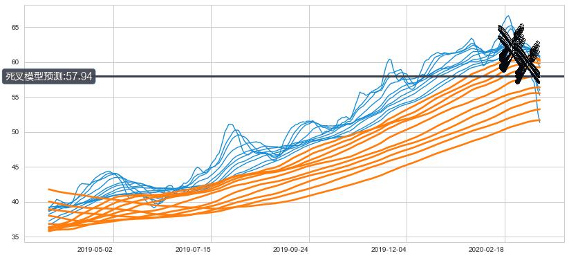 ➣ 60小时均线于(2020-02-21: 61.16)形成【死叉】基于【死叉历史模型】预测死叉后最低波谷价格: 58.70, 死叉后最低价格45.11,已经下跌超出预测最低波谷价格, 预期反弹