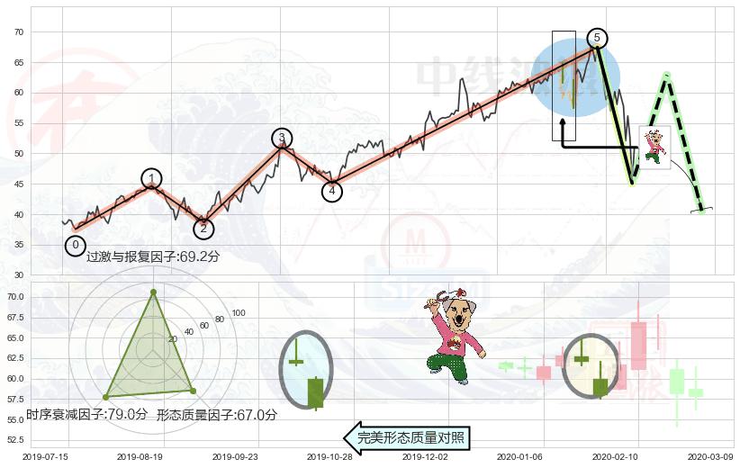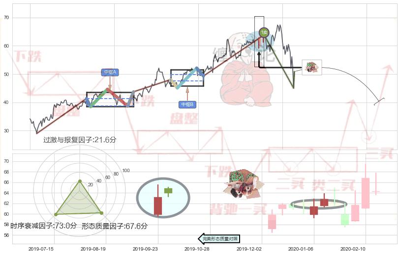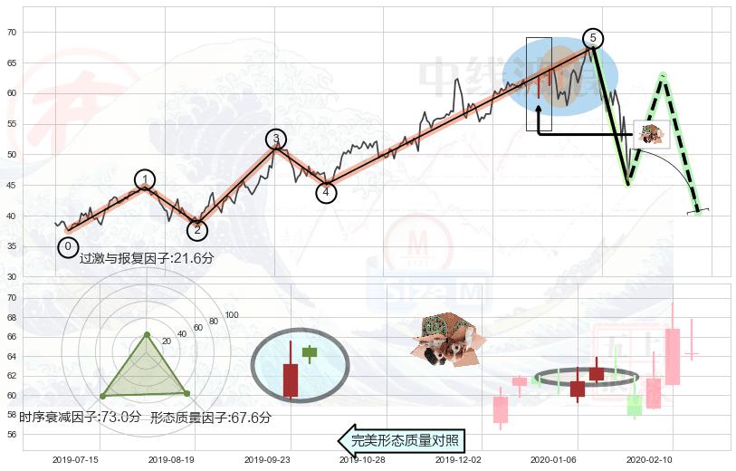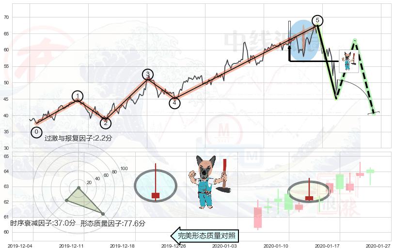 ➢ 🕰 价格走势在2020-01-06至2020-01-13期间形成顶部尽头线(下山虎),残存影响值:-3.32
