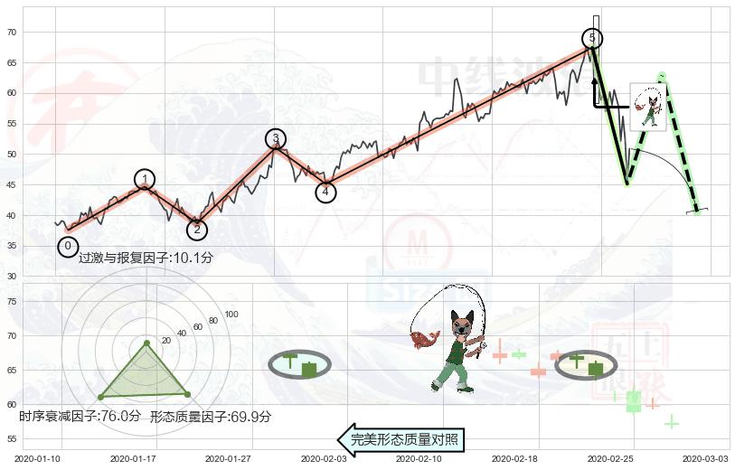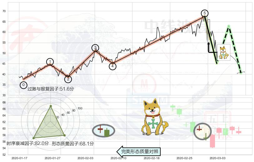 ➢ 顶部尽头线(下山虎) 🔜 波浪理论上涨浪:浪5回调拐点 综合量化分数:48.24 【中性】