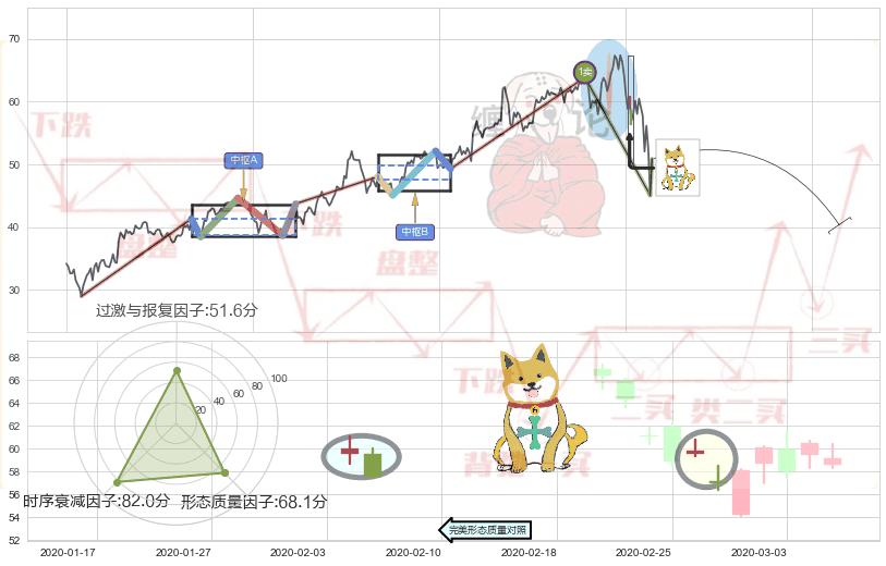 ➢ 🕰 价格走势在2020-02-20至2020-02-21期间形成吊颈线(上吊线),残存影响值:-2.19
