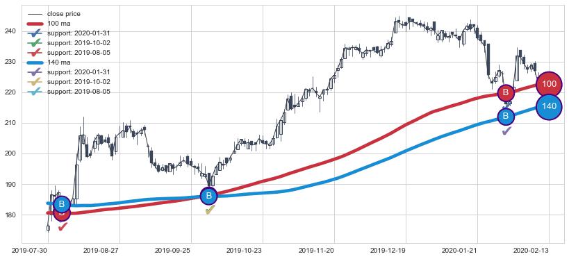 ➣ 100小时均线于(2020-02-14: 222.70)形成【死叉】基于【死叉历史模型】预测死叉后最低波谷价格: 202.73, 死叉后最低价格182.24,已经下跌超出预测最低波谷价格, 预期反弹