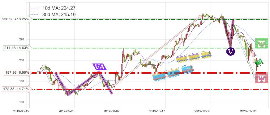 ♘ 支撑价格位187.96,可信任强度90.24%,距离最后交易2020-03-13形成的收盘价格202.10相差 -6.99%
