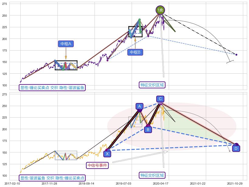 ➢ 缠论买卖点:上升缠中枢AB形成后猜想拐点1卖已到达,猜想后续持续下跌(均值回复)