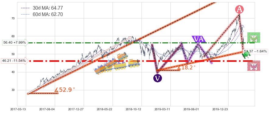 ♘ 阻力价格位56.40,可信任强度64.68%,距离最后交易2020-03-13形成的收盘价格52.23相差 +7.99%