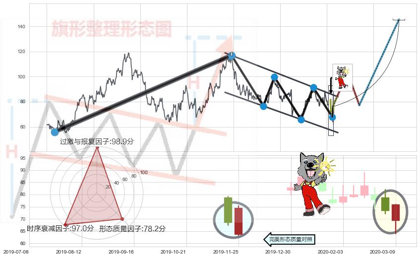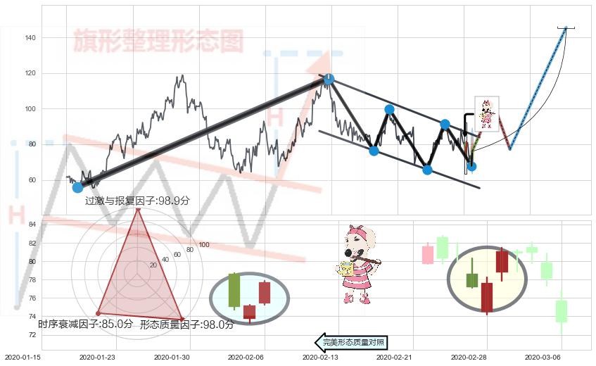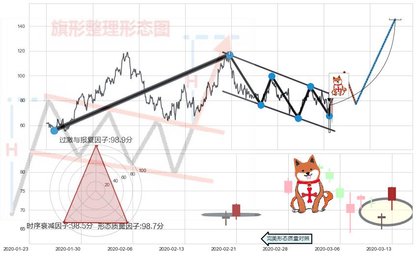 ➣ 【未确认突破,预测即将形成突破】降⚑旗形起点:2017-10-26, 预测突破点:2020-03-27,形态共608交易日