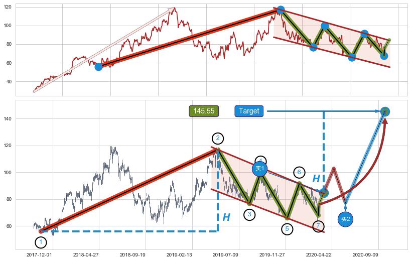 ➣ 最小中继整理涨幅→𝐇: 60.94 (𝐇旗杆的长度:旗杆起点→顶点)