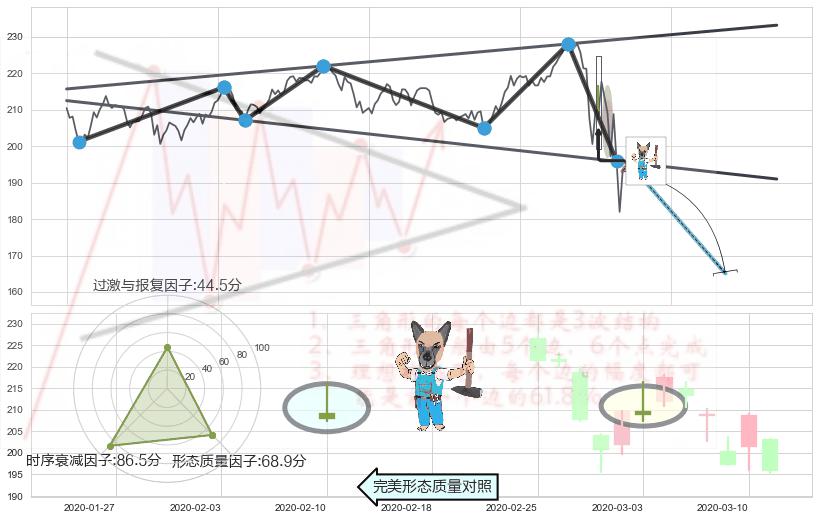 ➢ 【卖1】: 激进型 卖点→(2020-03-11: 195.85 )形成突破【扩散】三角形反转【反转】形态