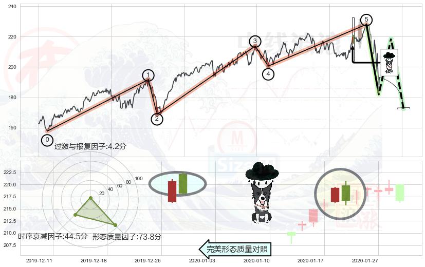 ➢ 🕰 价格走势在2020-02-10至2020-02-24期间形成黄昏之星(夜星),残存影响值:-6.96