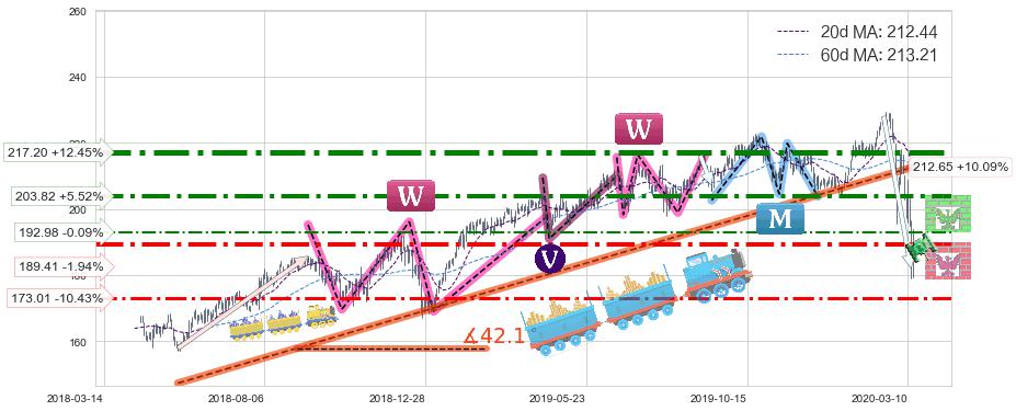 ♘ 支撑价格位189.41,可信任强度76.43%,距离最后交易2020-03-13形成的收盘价格193.16相差 -1.94%