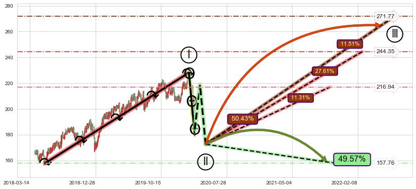 ➣ 循环浪继续向上【平均值】位置(2022-02-25, 244.35),匹配聚类样本比例54.75%, 可能性概率27.61%