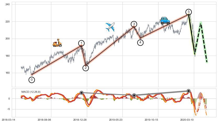 ➣ 波浪理论:猜想止涨 → 下跌 →【拐点】浪5已完成 → 大趋势均值回复