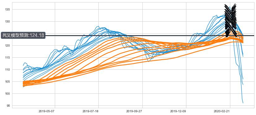 ➣ 35小时均线于(2020-02-21: 131.09)形成【死叉】基于【死叉历史模型】预测死叉后最低波谷价格: 125.52, 死叉后最低价格83.53,已经下跌超出预测最低波谷价格, 预期反弹
