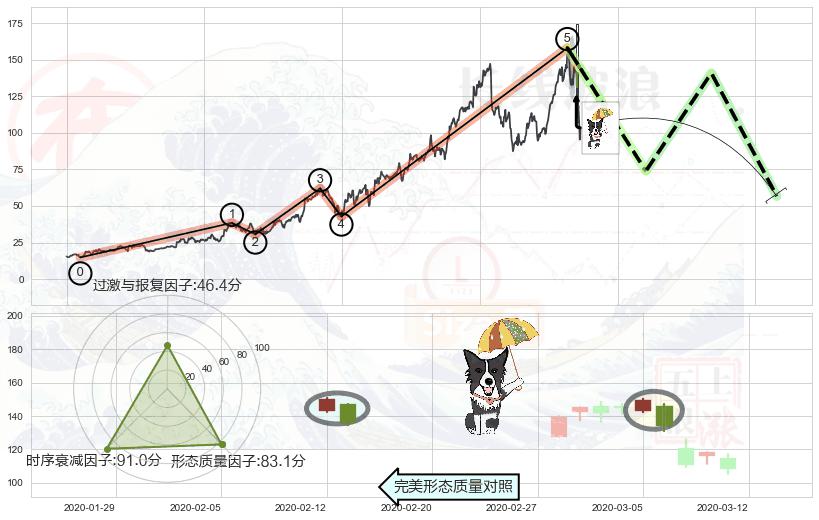➢ 🕰 价格走势在2020-03-10至2020-03-11期间形成吊颈线(上吊线),残存影响值:-4.66