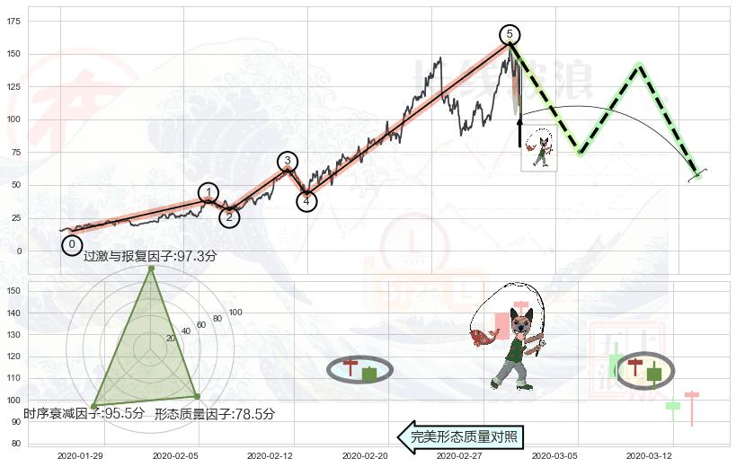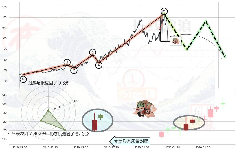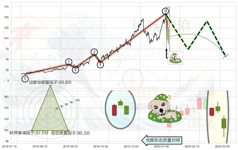➢ 顶部尽头线(下山虎) + 波浪理论上涨浪:浪5回调拐点信号叠加后【反向回撤率】中等,【看空】信号叠加【存续影响中等】