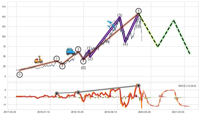 ➣ 第一, 三, 五浪上涨动能逐渐【增强变大】,趋势不断加固
