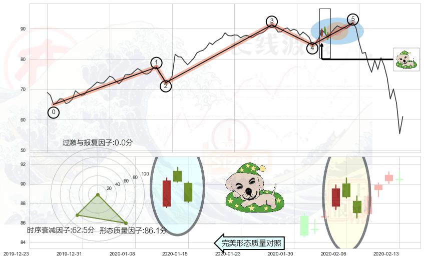 ➢ 🕰 价格走势在2020-02-05至2020-02-07期间形成黄昏之星(夜星),残存影响值:-2.60