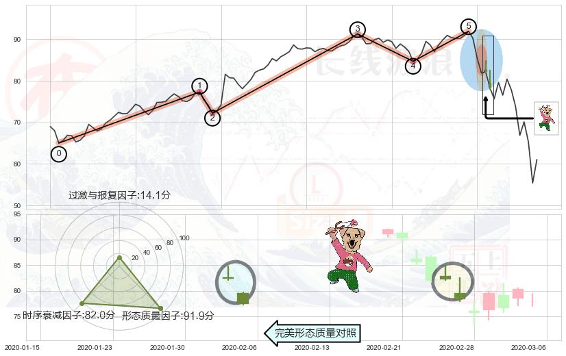 ➢ 🕰 价格走势在2020-03-10至2020-03-11期间形成吊颈线(上吊线),残存影响值:-4.51