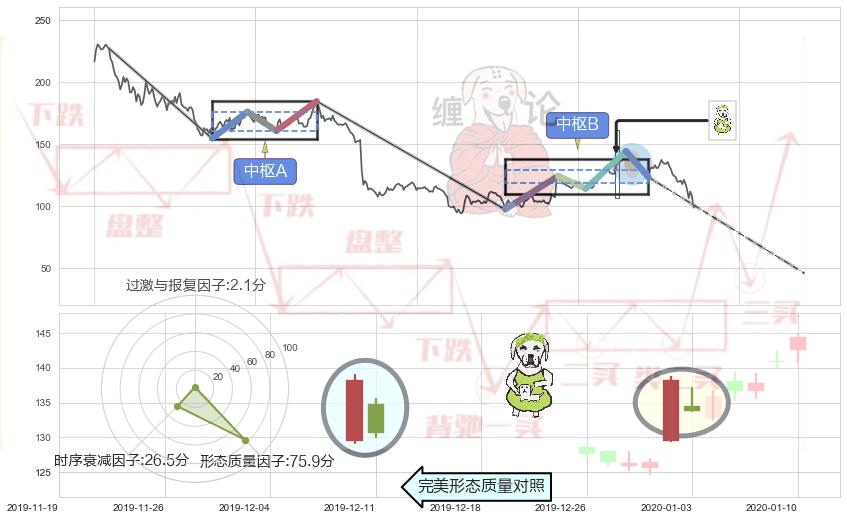 ➣ 下跌螺旋桨 + 缠论中枢点破位中枢B支撑下拉信号叠加后【目标达成率】中等,【看空】信号叠加【存续影响中等】