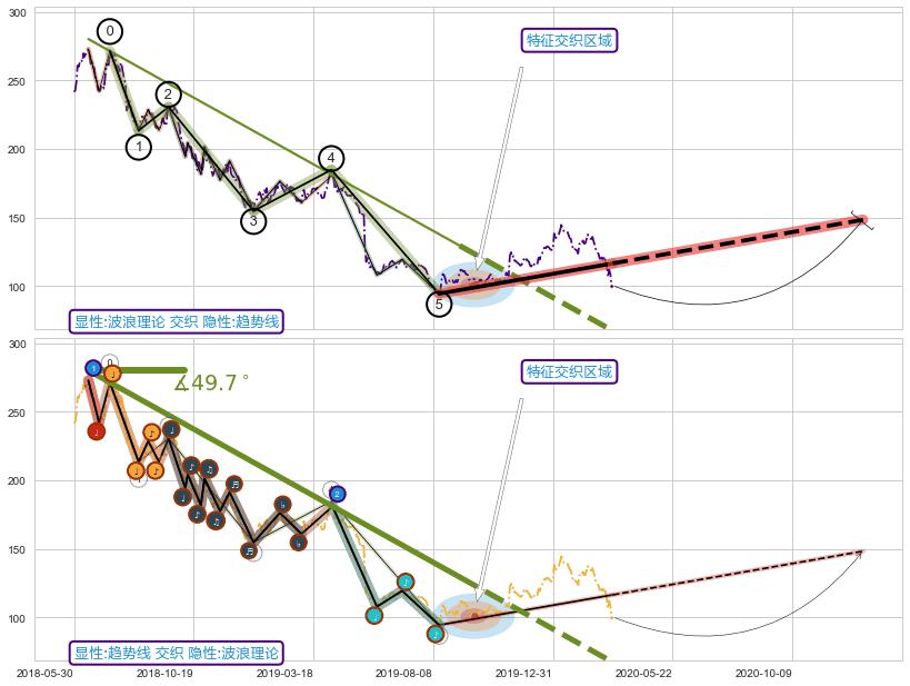 ➢ 波浪理论与趋势线信号事件周期长度级别相同,同周期信号事件