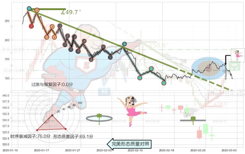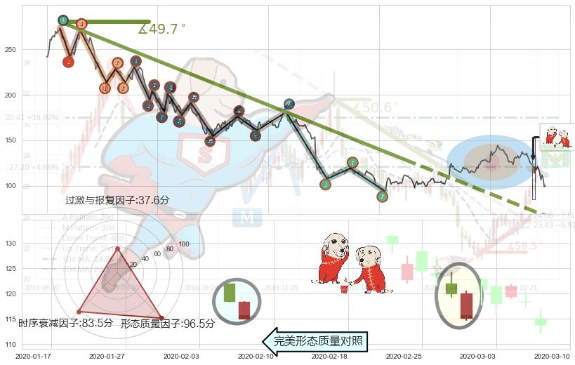➢ 🕰 价格走势在2020-02-28至2020-03-03期间形成黄昏之星(夜星),残存影响值:-4.83