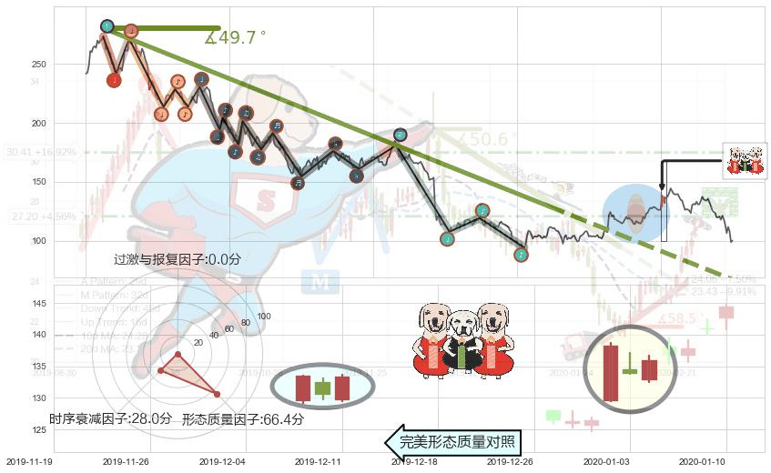 从2018-06-15至2019-09-10,共包含311个交易日,阶段股价下跌-82.05%,阶段股价变动位移路程比: 1 : 6,下跌趋势角度: 49.7
