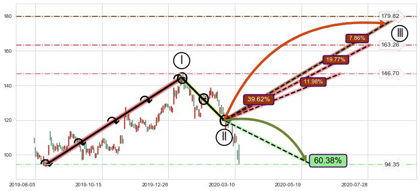 ➢ 循环浪继续向上【最低】位置(2020-06-29, 146.70),匹配聚类样本比例30.25%, 可能性概率11.98%