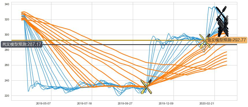 ➢ 60小时均线于(2020-02-04: 291.49)形成【金叉】基于【金叉历史模型】预测金叉后最高波峰价格: 322.17, 金叉后最高价格341.04,已经上涨超出预测最高波峰价格, 预期回调