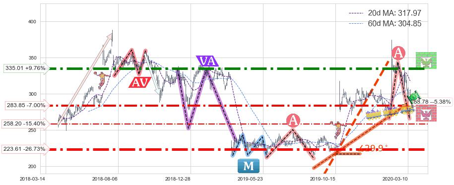 ♘ 阻力价格位335.01,可信任强度91.97%,距离最后交易2020-03-13形成的收盘价格305.21相差 +9.76%
