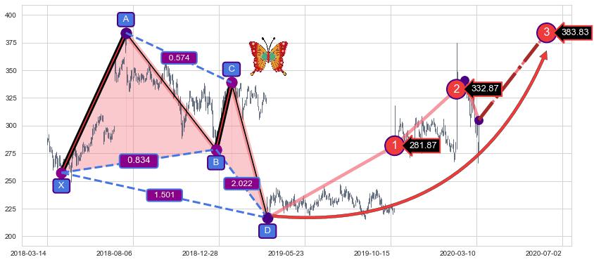 ➣ 已完成【蝴蝶】形态起点X: 2018-04-09, 终点D: 2019-03-22, 共241交易日