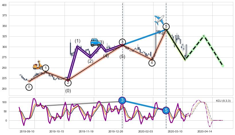 ➢ AI预测: 假定反转继续,第❸价格目标位置(2020-07-02, 383.83)