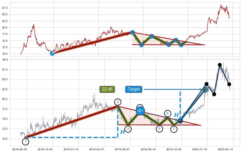➣ 【已达成】最小【整理】第一目标价格→(2020-01-06: 22.46 ), 后续继续【整理】上涨动力微弱,上涨较小