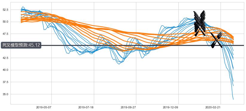 ➣ 60小时均线于(2020-01-15: 49.24)形成【死叉】基于【死叉历史模型】预测死叉后最低波谷价格: 45.33, 死叉后最低价格29.52,已经下跌超出预测最低波谷价格, 预期反弹