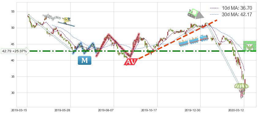 ♞ 10日均线:36.70,30日均线:42.17→ 快线<慢线