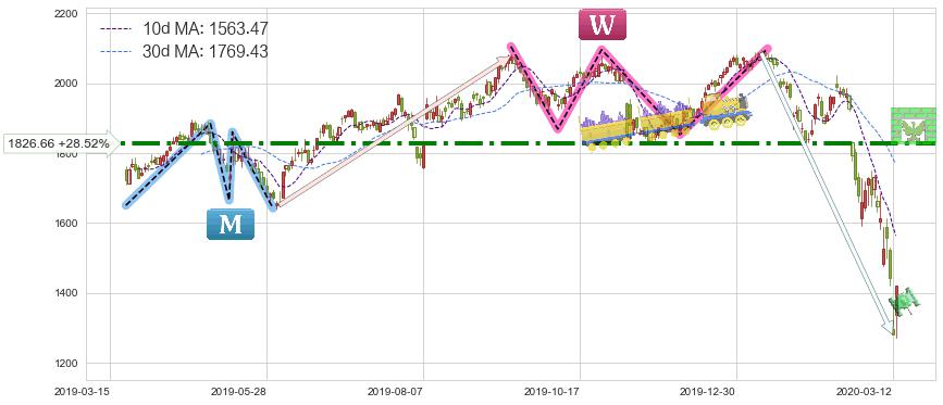 ♘ 阻力价格位1826.66,可信任强度75.43%,距离最后交易2020-03-13形成的收盘价格1421.33相差 +28.52%
