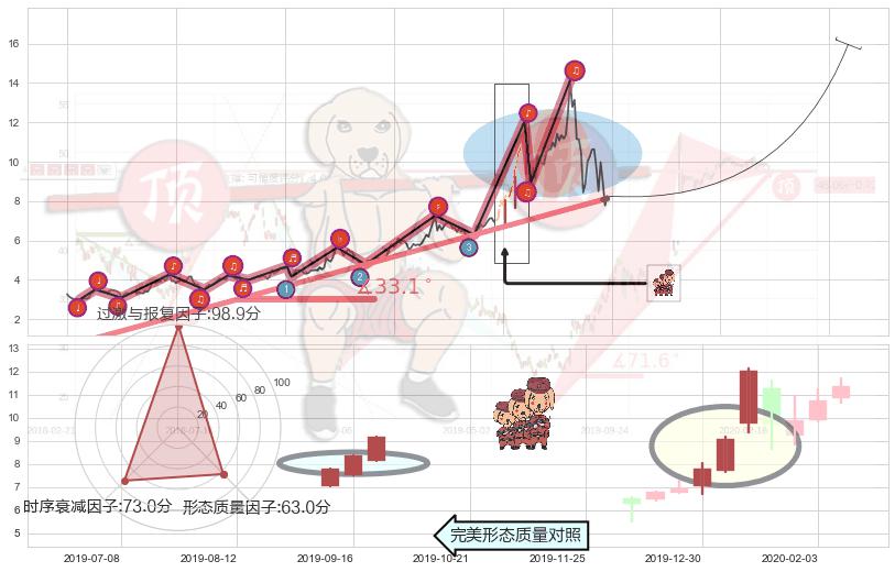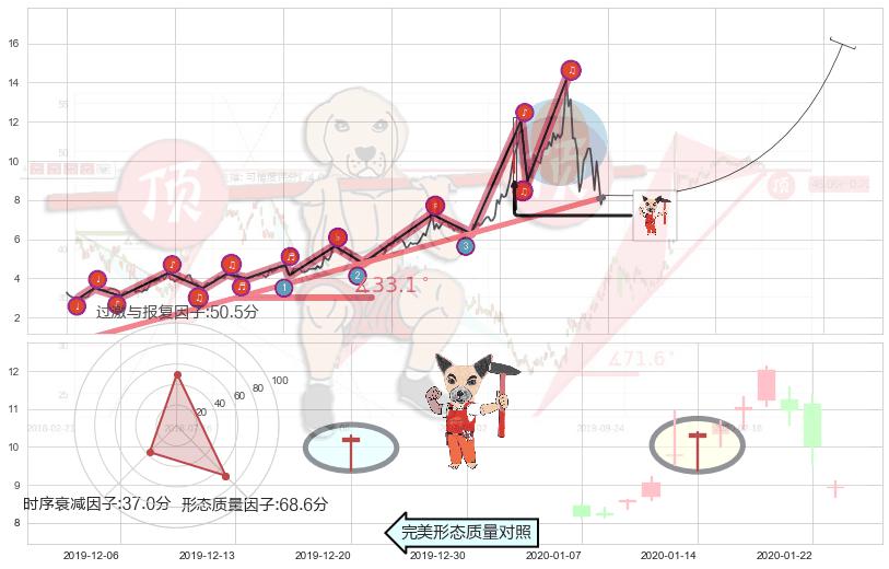➢ 🕰 价格走势在2020-01-14至2020-01-14期间形成锤头线(锤子线),残存影响值:4.06