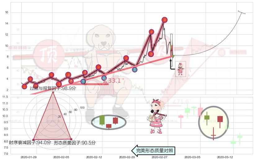 从2019-03-28至2020-03-11,共包含241个交易日,阶段股价上涨133.96%,阶段股价变动位移路程比: 1 : 5,上涨趋势角度: 33.1
