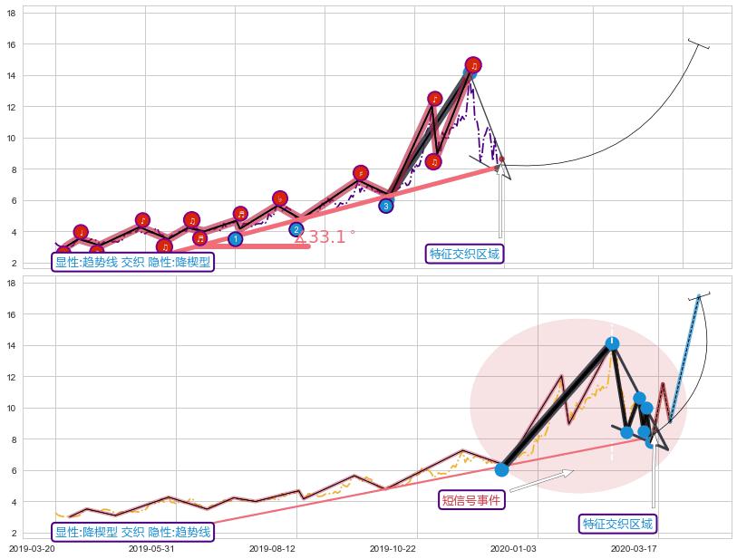 ➢ 降楔型属【短级别信号事件】趋势线属【长级别信号事件】长短周期组合信号事件, 短长事件长度比26.34%