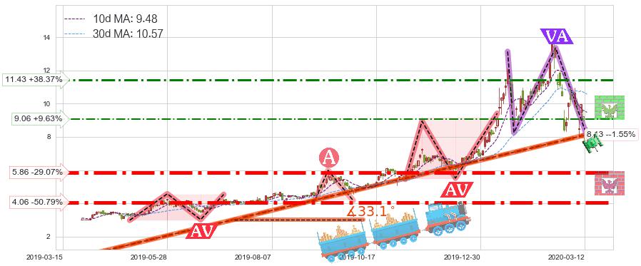 ♘ 支撑价格位5.86,可信任强度90.90%,距离最后交易2020-03-13形成的收盘价格8.26相差 -29.07%