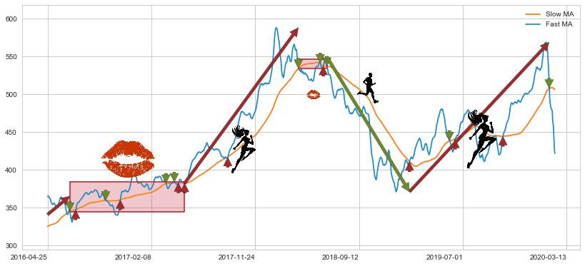 2016-06-24至2017-05-12 慢线与快线多次接触,存在上下穿越,有缠绕