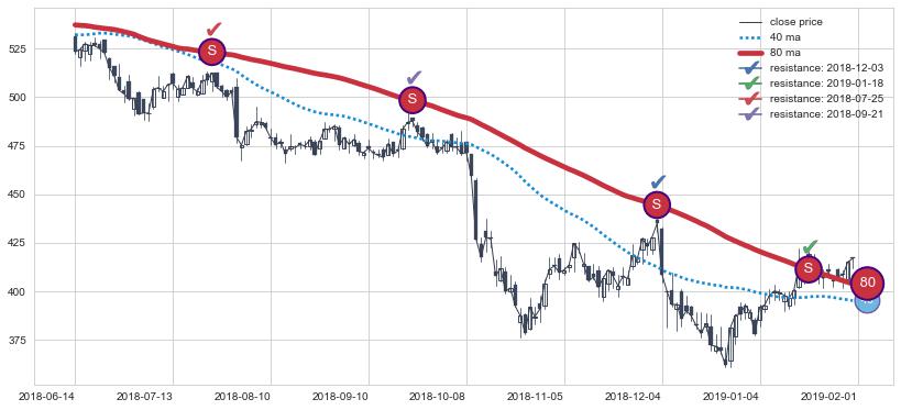 ➢ 最优均线组合共正确确认支撑阻力信号9处,正确确认率 75.00%