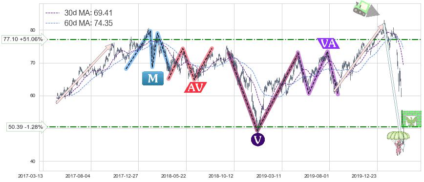 ♘ 阻力价格位77.10,可信任强度53.71%,距离最后交易2020-03-13形成的收盘价格51.04相差 +51.06%