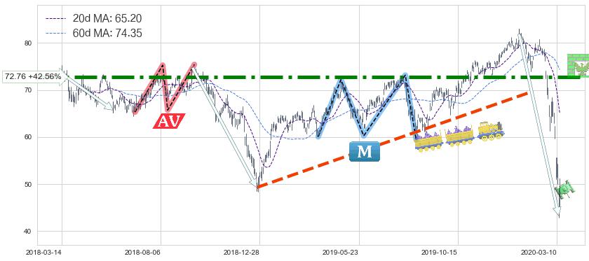 ♘ 阻力价格位72.76,可信任强度86.24%,距离最后交易2020-03-13形成的收盘价格51.04相差 +42.56%