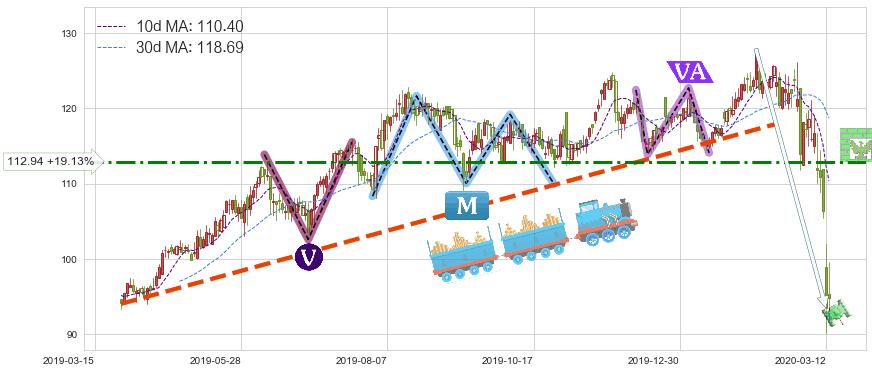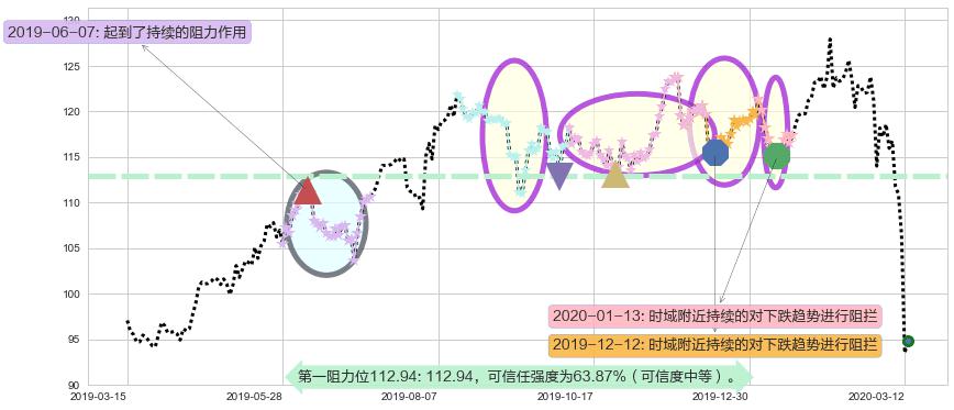 ♘ 阻力价格位112.94,可信任强度63.87%,距离最后交易2020-03-13形成的收盘价格94.80相差 +19.13%