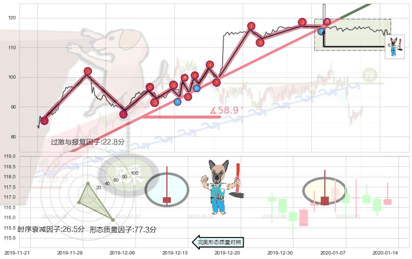从2019-03-15至2020-01-23,共包含217个交易日,阶段股价上涨31.13%,阶段股价变动位移路程比: 1 : 4,上涨趋势角度: 58.9,2019-09-19向⇪形成缺口,跳空上涨+10.52%