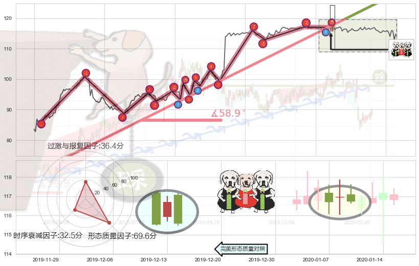 ➢ 🕰 价格走势在2020-01-07至2020-01-09期间形成两黑夹一红,残存影响值:-2.50