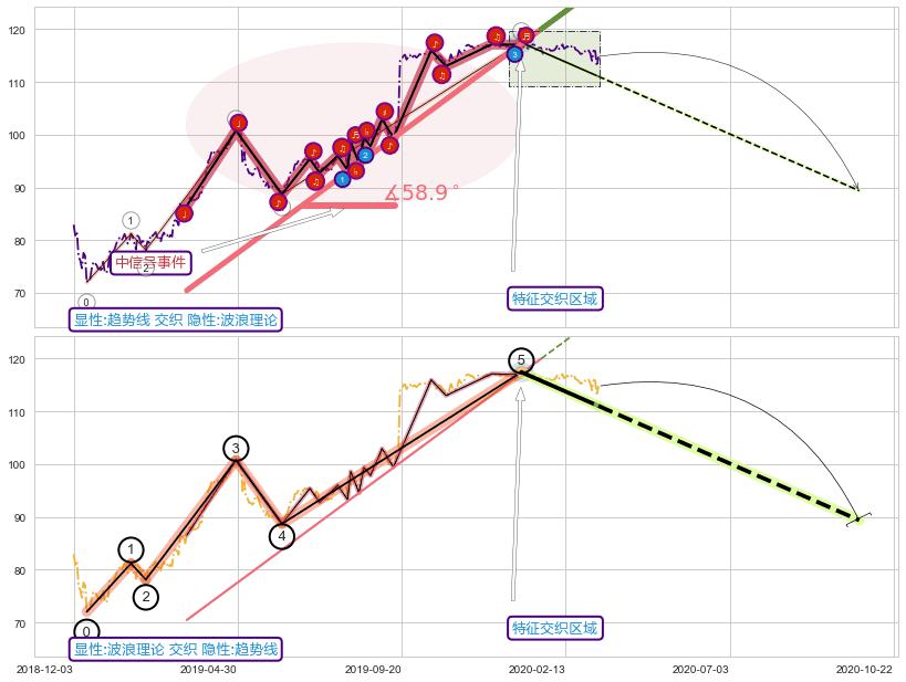 ➢ 趋势线属【中级别信号事件】波浪理论属【长级别信号事件】中长周期组合信号事件,中长事件长度比65.50%