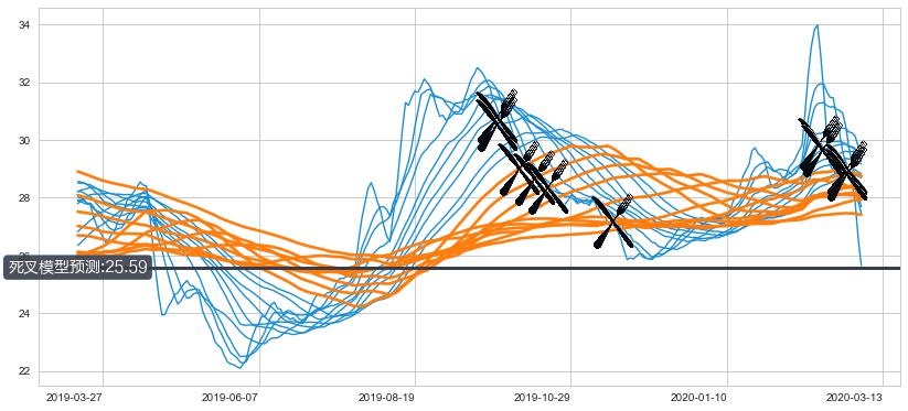 ➣ 60小时均线于(2020-03-06: 28.78)形成【死叉】基于【死叉历史模型】预测死叉后最低波谷价格: 25.35, 死叉后最低价格22.24,已经下跌超出预测最低波谷价格, 预期反弹