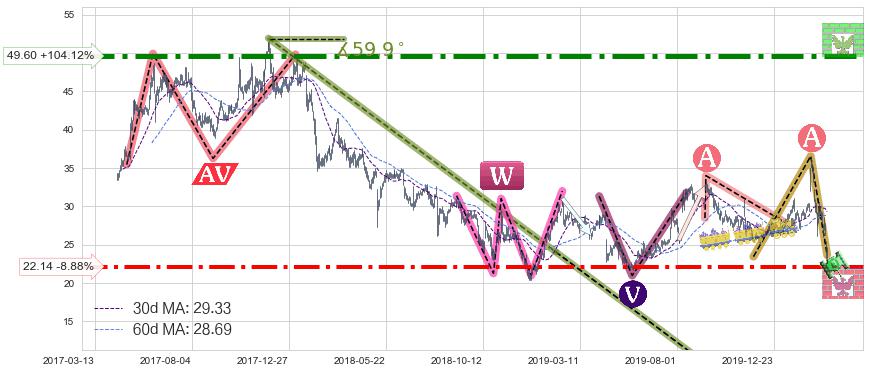 ➢ 2020-02-25到达第❶价格目标位置29.69