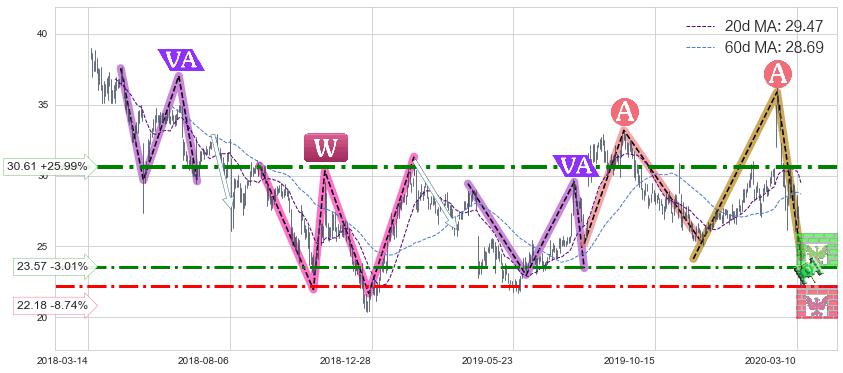 ♘ 支撑价格位22.18,可信任强度67.07%,距离最后交易2020-03-13形成的收盘价格24.30相差 -8.74%
